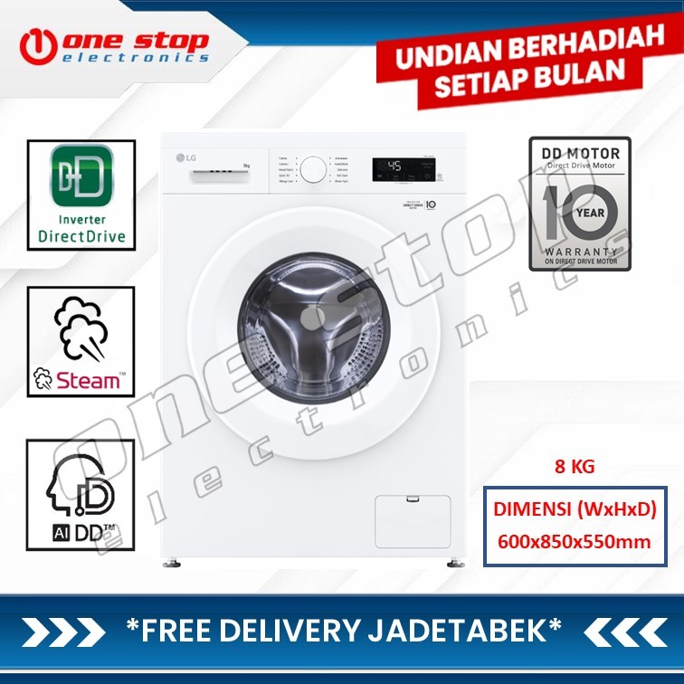 💰 Rp5.899.000 | ⭐ 4.9 (298 rating) | 🛒 Terjual 500+ | • Kapasitas: 8.5 kg | • AI DD Steam ThinQ • WiFi Control • 6 Motion DD |